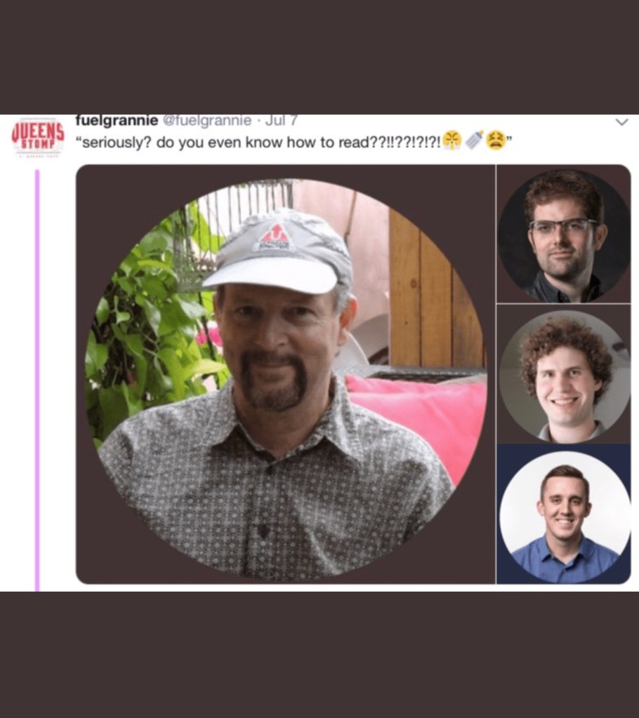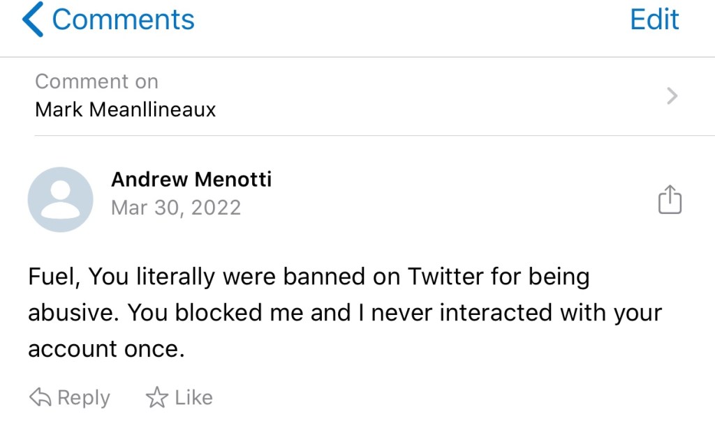 The center guy here called me “abusive“ in the comments for my post about Mark Mollineaux.