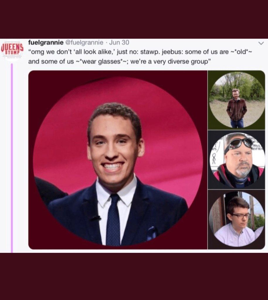 “omg we don’t ‘all look alike,” just no stawp. jeebus: some of us are ~*old*~ and some of us ~*wear glasses*~; we’re a very diverse group”