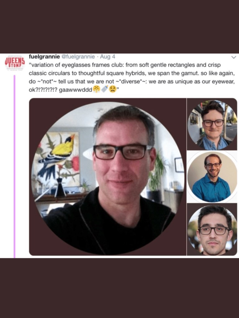 “variation of eyeglasses frame club: from soft gentle rectangles and crisp classic circulars to thoughtful square hybrids, we span the gamut, so like again, do not tell us that we are not ~*diverse*~: we are as unique as our eyewear, ok?!?!?!?!? gaawwwddd😤🍼😫”