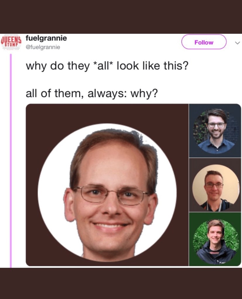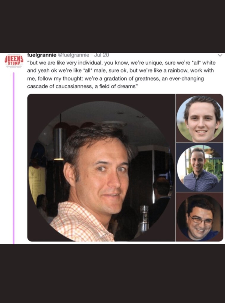 “listen, we are ~*not*~ all white guys, we’re not, okay?!?!?!?! like, literally not, seriously: it just ~*looks*~ like we, so stawp saying we are because we are so not 😤🍼😫”