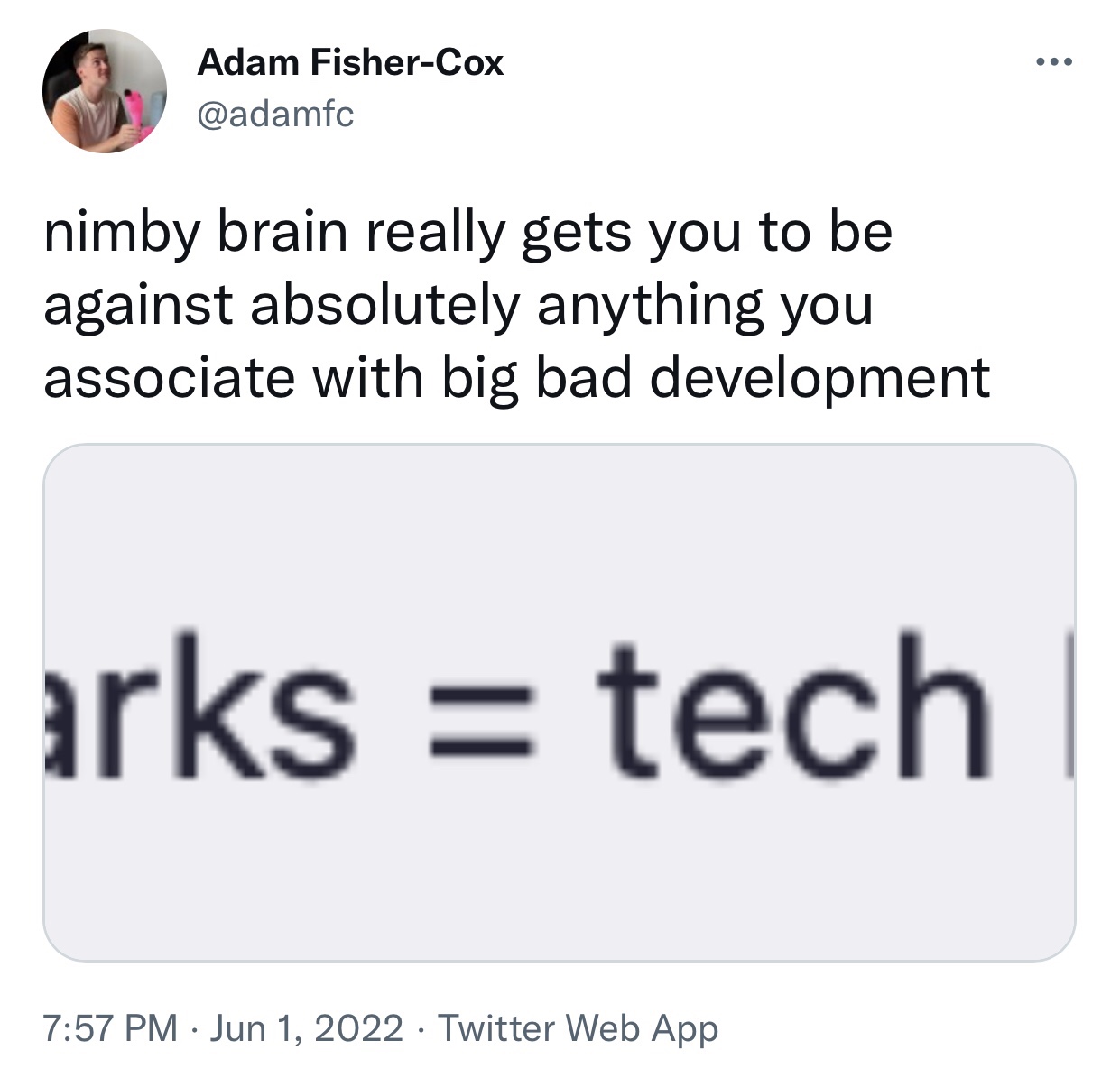 If you are incapable of directly telling me that I have a “nimby brain,” Open New York member Adam Fisher Cox, perchance your fear of discourse reveals less proof of my “nimby brain” than it demonstrates solid evidence of your yimby stomach.