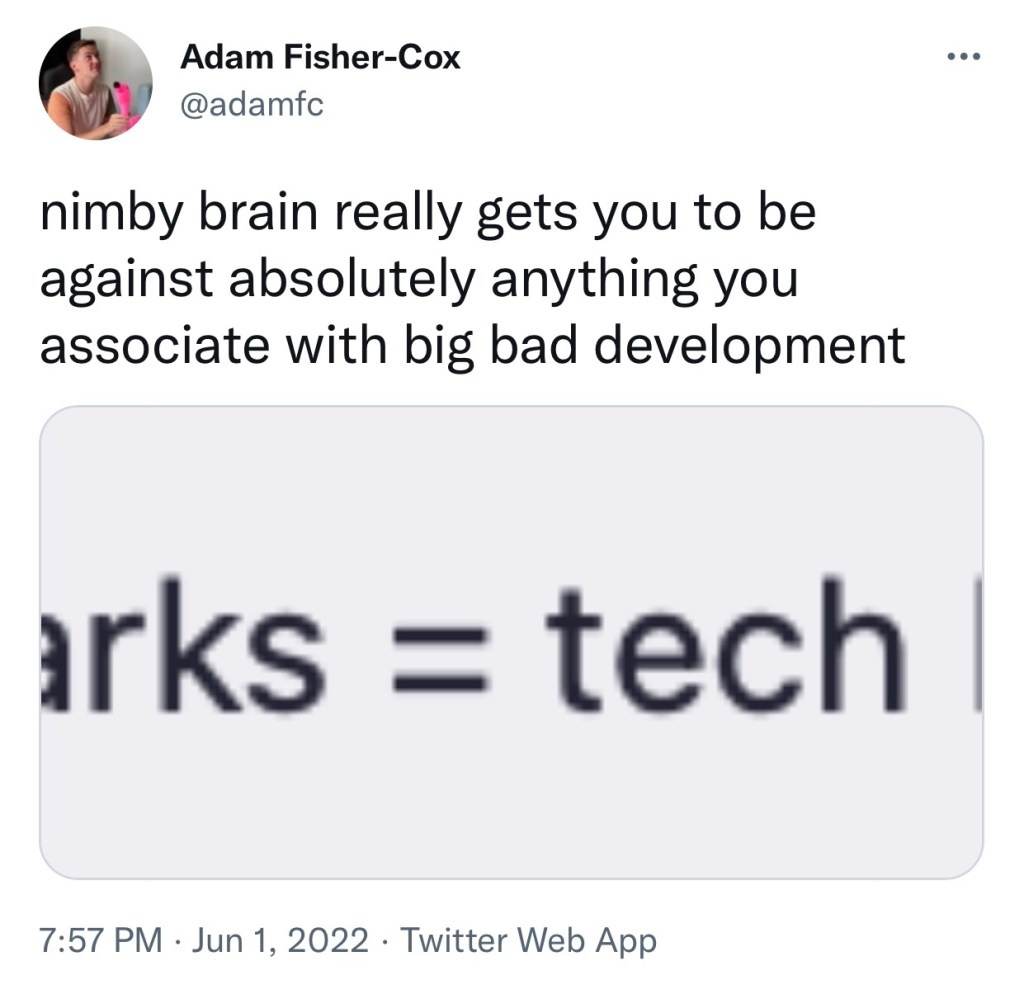 Or does the thought of direct discourse with my “nimby brain” make your yimby tummy ache?