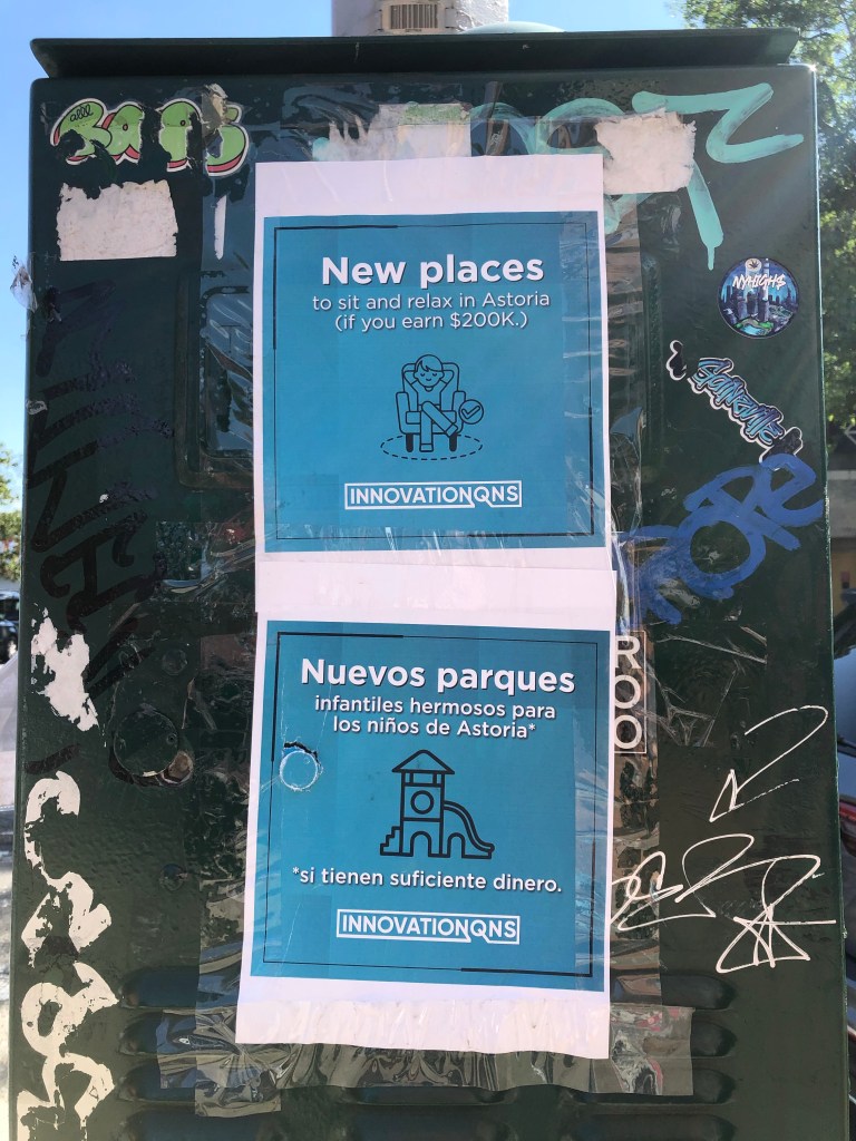 Plus, since you are new to this community board, as well as maybe even being new to the Astoria and Long Island City yourself, you may not fully understand the needs of this community’s majority, who are not high earners. You may also see dog parks as a priority over deeply affordable housing; the latter being an amenity wealthy people covet more than their lower earning neighbors.